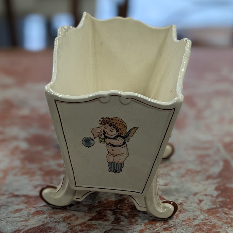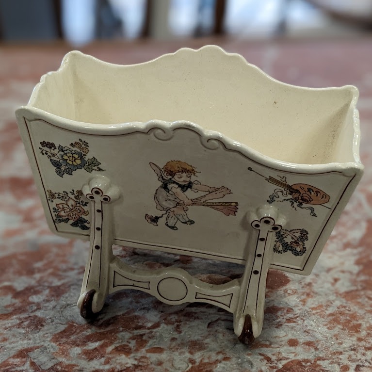Rare petite jardinière formant berceau de la faïencerie de Sarreguemines modèle des “enfants Richard” de la fin du XIXème.