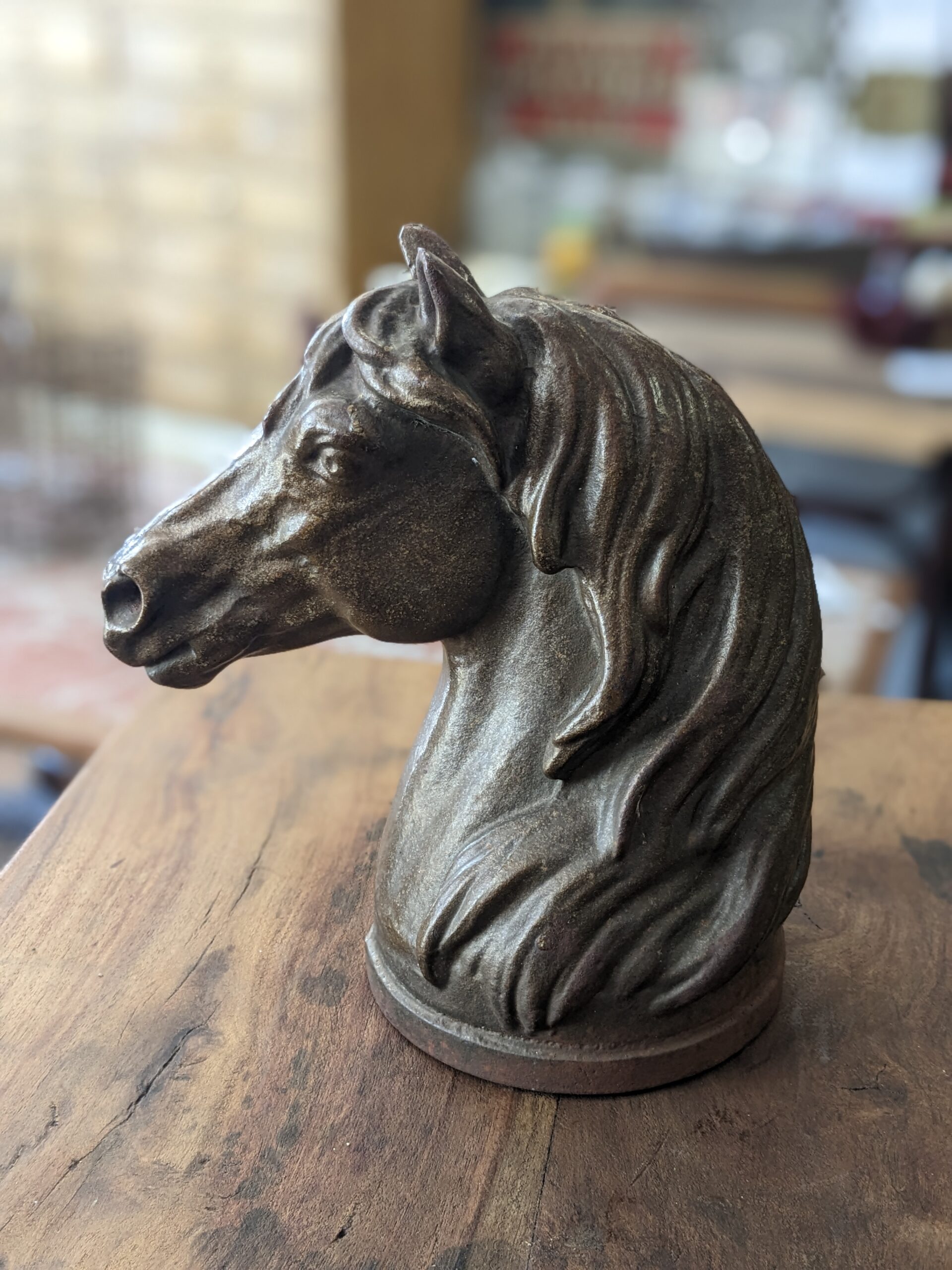 Sculpture Tête de cheval en fonte fin XIXème début XXème
