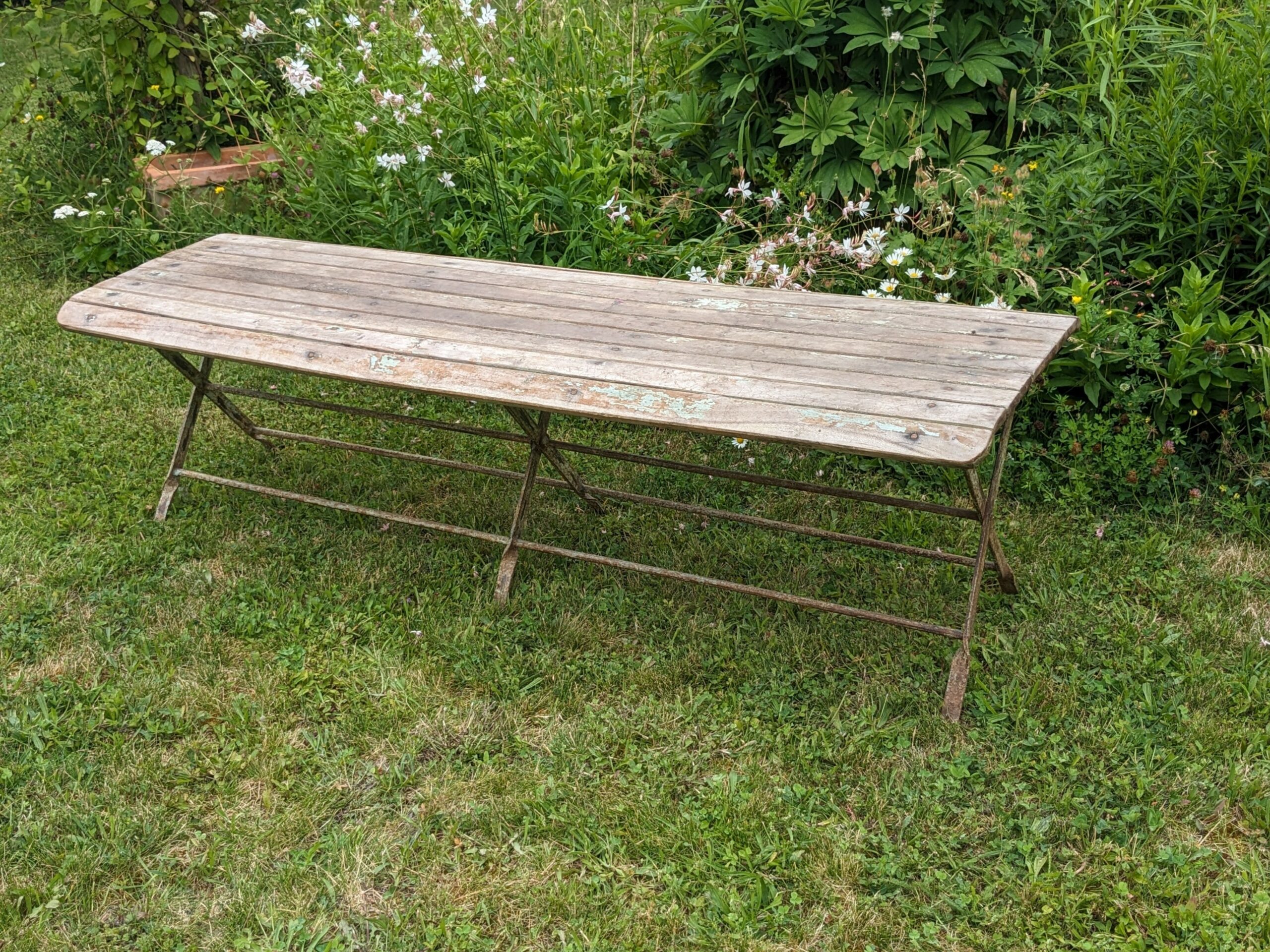 Rare banc de jardin début XXème pliant, très bel état, superbe patine.