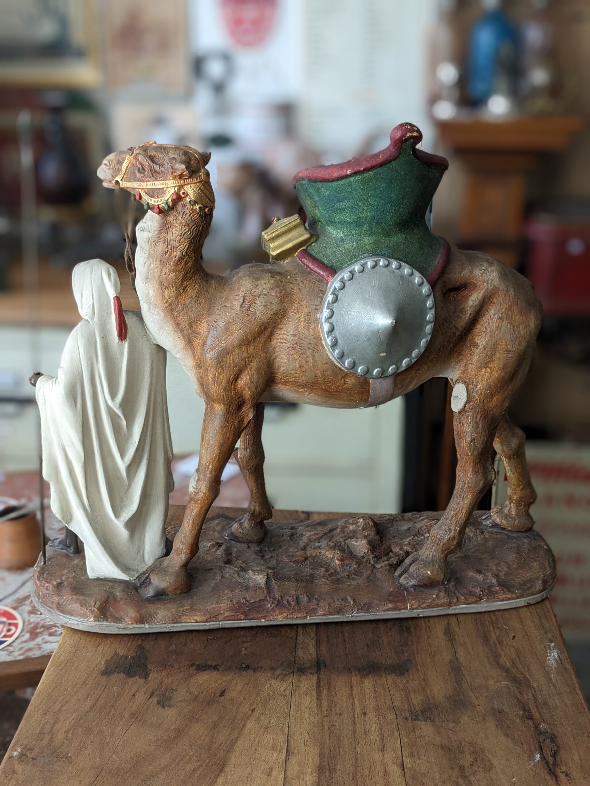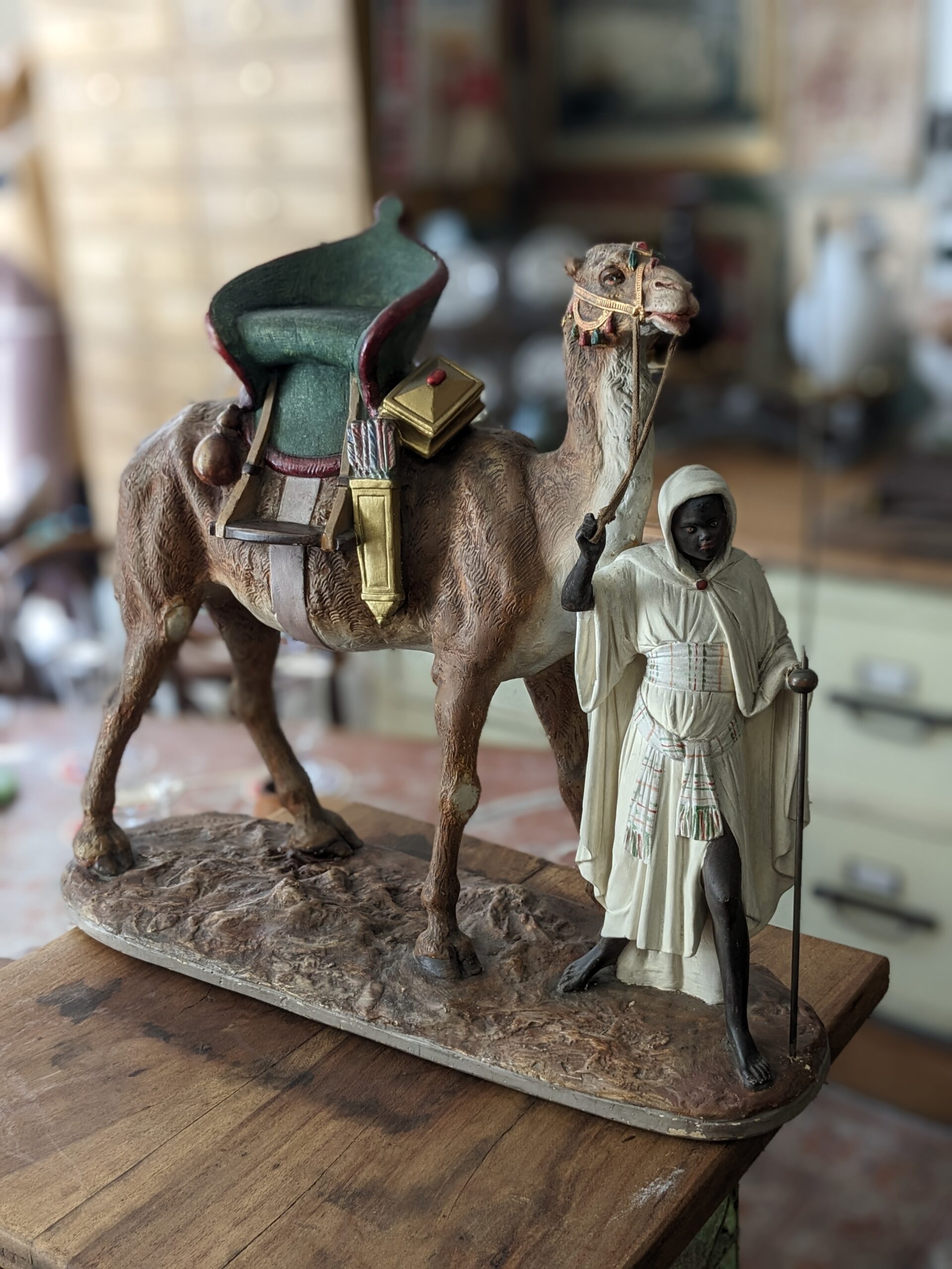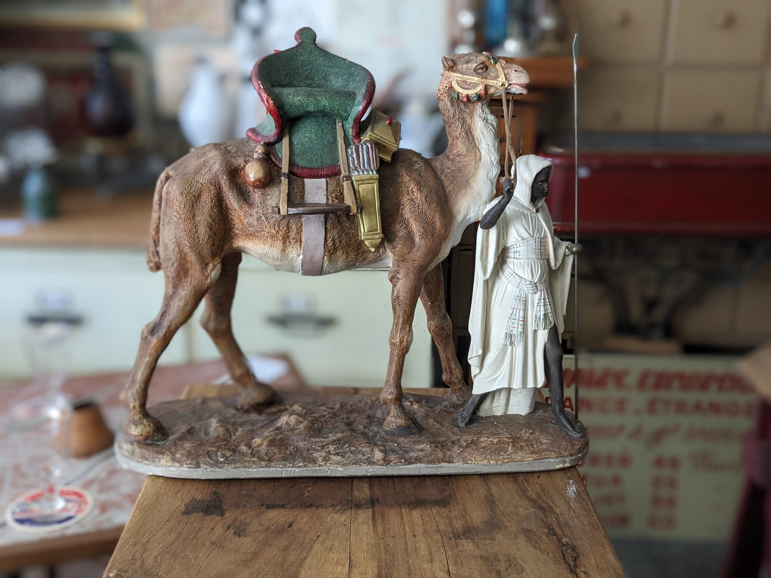 Ancien grand santon fin XIXème présentant un chamelier et son animal.