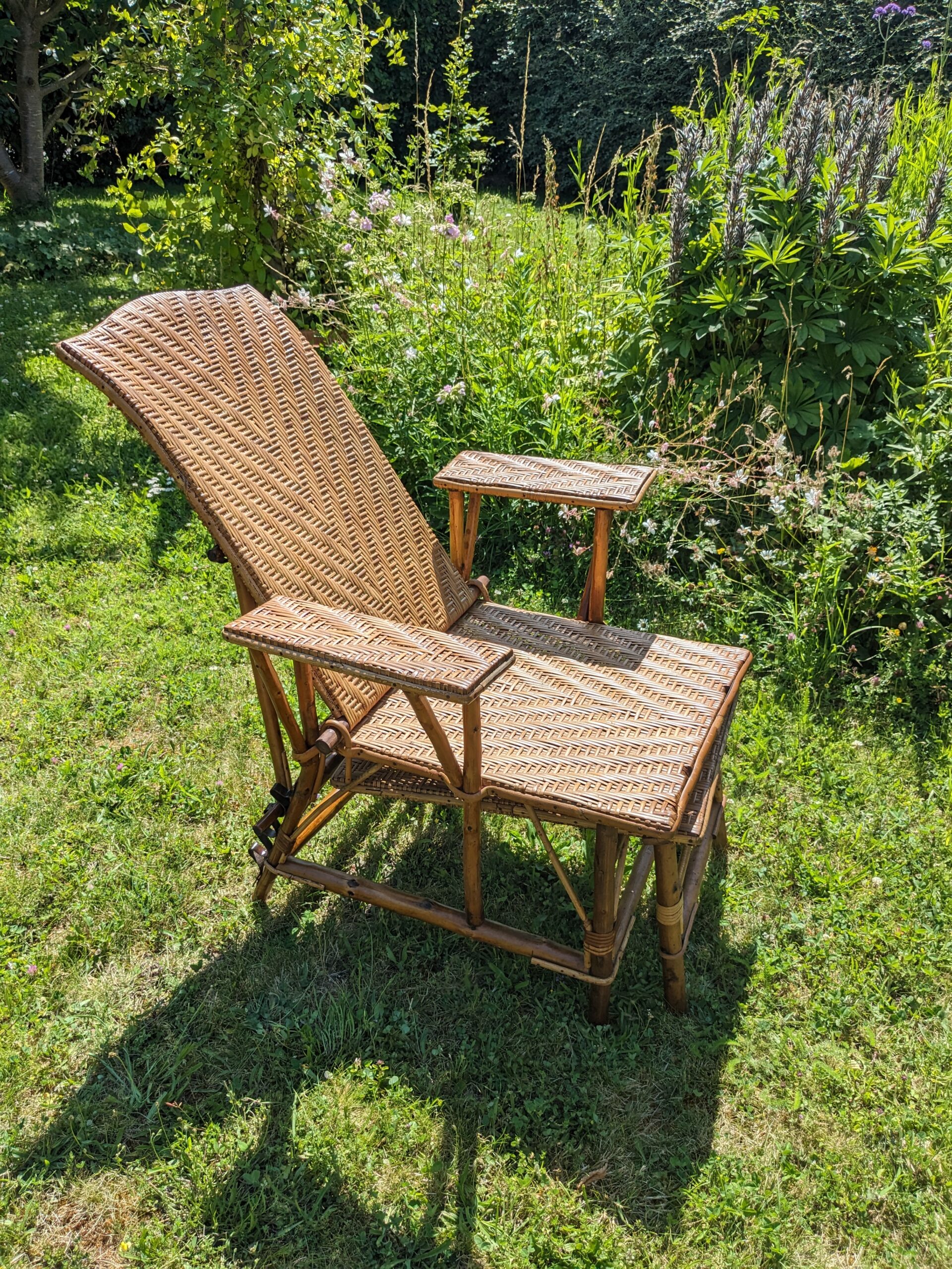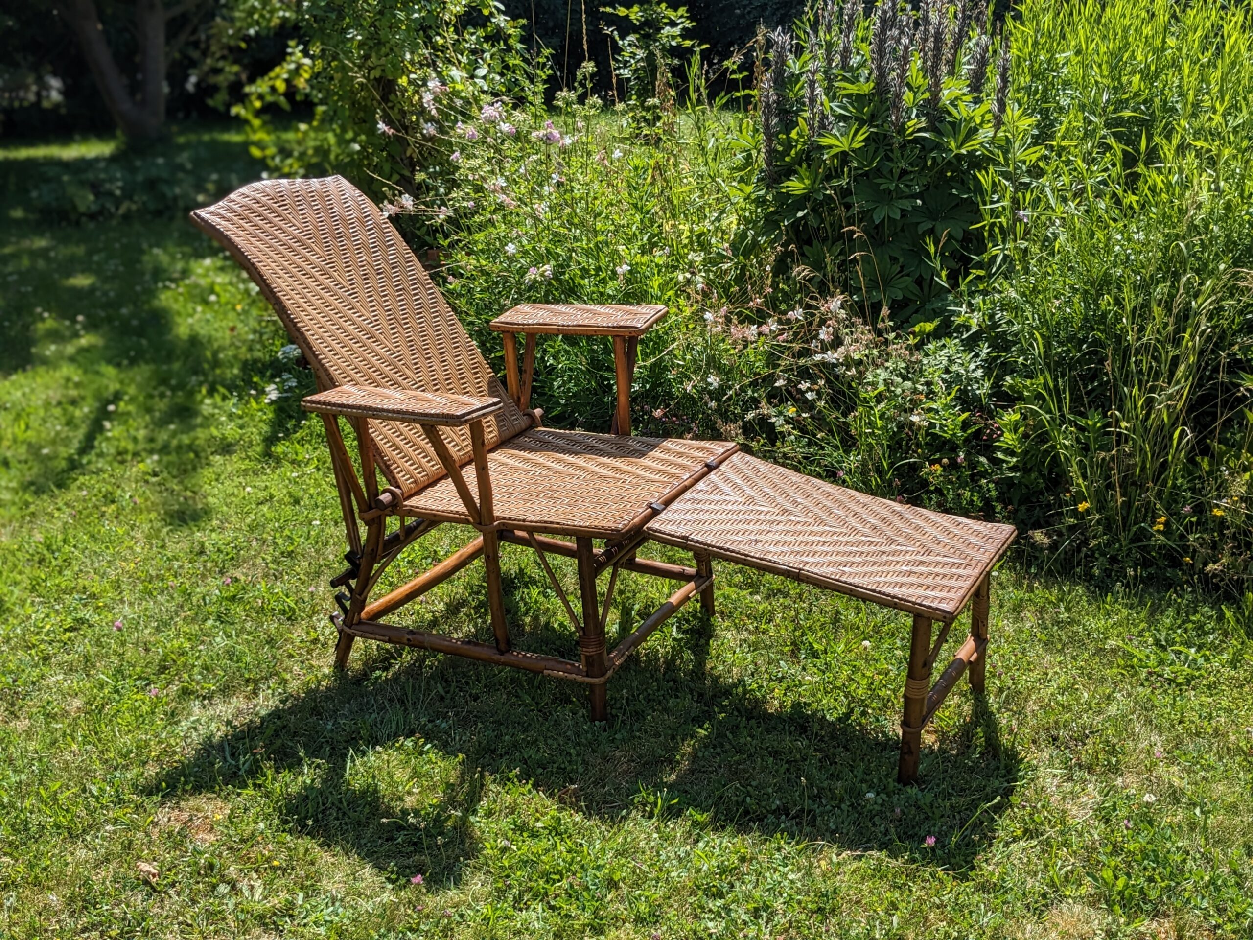 Ancienne chaise longue en rotin 1930