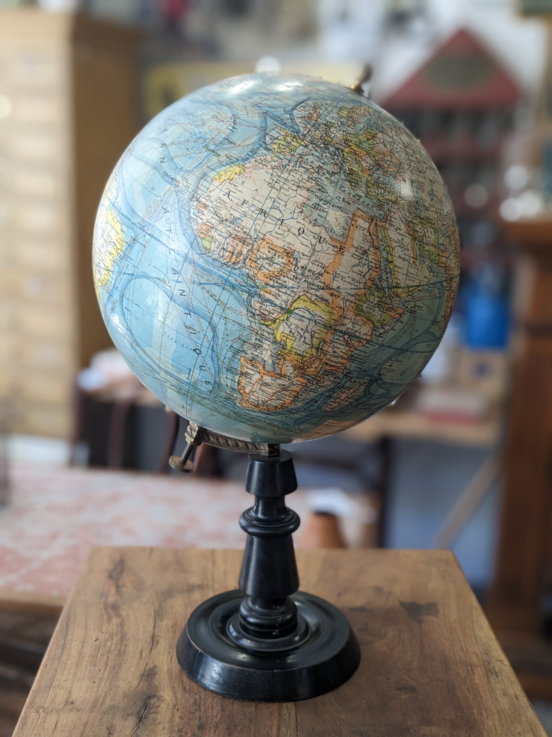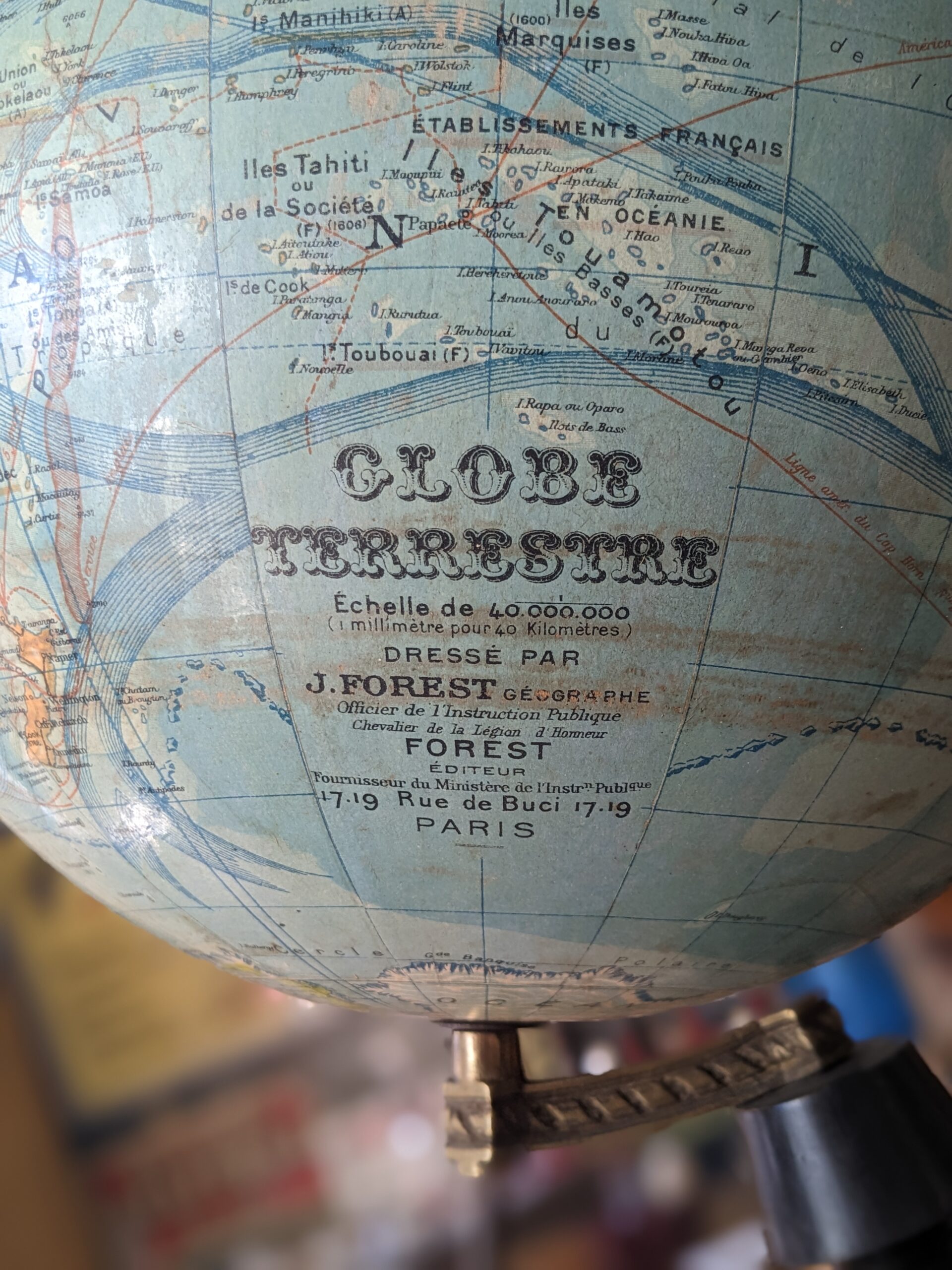 Superbe globe terrestre début XXème édité par J.FOREST échelle 1/40 000 000.