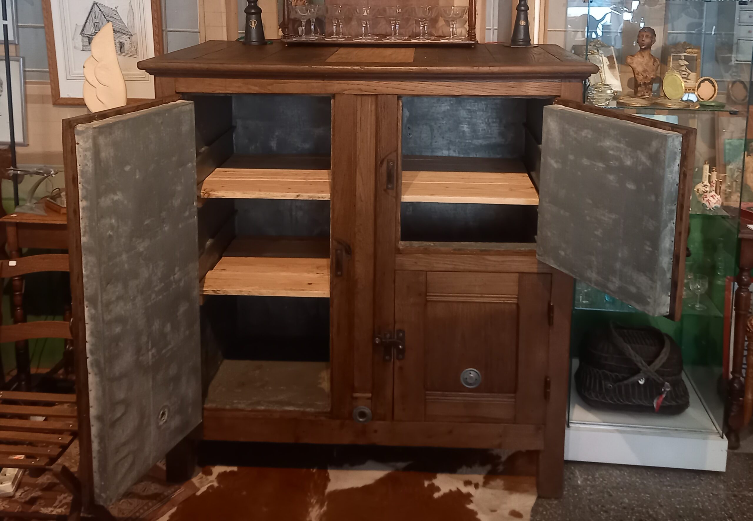 Ancien meuble frigo de boucher fin XIXème intérieur Zinc, superbe patine.