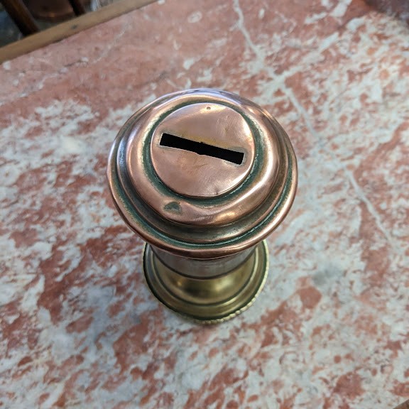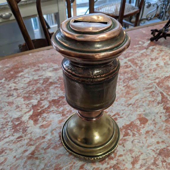 Ancienne tirelire tronc de coiffeur de comptoir XIXème.
